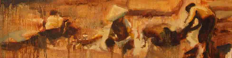Weller’s paintings often make use of images of photographs of oriental characters, particularly those of women, children, workers and old men. It was over 10 years ago when Rebecca Weller found herself fascinated with the images of Japanese women on post cards. Black and white photographs of geisha taken years ago representing the ideas of beauty and perfection inspired her to create a large scale series artwork. It began a journey of painting which has brought her to the emotional “Chinese Figures” and “The Workers Series”.